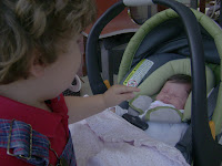 William had a lunch date last week with sweet baby Caroline. I think he was glad to finally meet this baby girl we keep talking about. He kept patting her head full of hair! We sure used the word "gentle" alot. Caroline is really healthy and growing so fast! She reminds us so much of William with those chubby cheeks and all that hair. Looking forward to another lunch date soon!