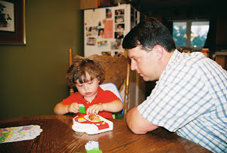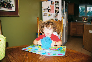 William is not really ready to tell us how old he is. We ask him if he is two, and he laughs and says, "No...Willwem." But ask him his name, and he says, "Name."