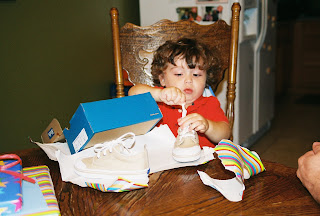 After a marathon nap, we opened presents with Daddy and ate more cookie cake! (We didn't eat very much of it at lunch, so I passed on making a cake and took a nap with William...thanks again, Alyssa!)