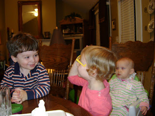 Claire & Emma came to meet Lauren last Sunday! We were so glad to see our precious friends (and their parentals)! We had a fun visit. William rightfully thinks Claire is so funny and he is in love with Emma. He dressed Emma in a new outfit Aunt April gave Lauren...Emma just smiled, as always. We can't wait to see ya'll again soon!